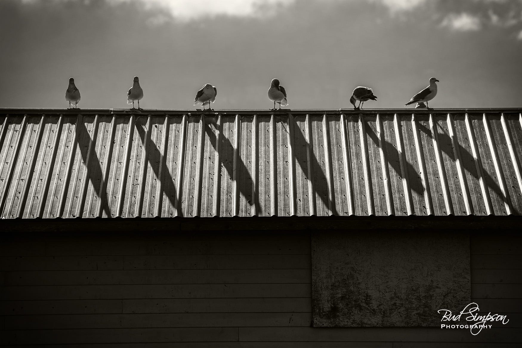 This is a photograph of six assholes. Six flying assholes. Six seagulls.